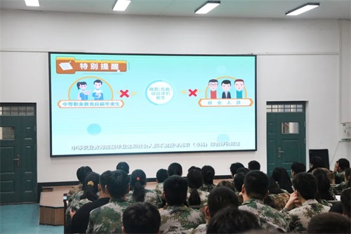 2021年11月3日,臨沂沂蒙國防教育召開2022年山東春考政策解讀會。首先,19級年級科長李欣、學籍科負責人向學員現場解讀山東省春季高考政策改革及30問,詳細闡述了2022年春季高考招生對象有什么變化?參加春季高考統一考試招生如何報名?參加高職(專科)單獨考試招生的考生如何報名?春季高考統一考試招生有多少專業類別?等重要內容,通過此次宣讀解讀會,讓即將面臨高考的學生掌握新形勢考情、把握時間點、認真奮戰,為順利參加考試打下良好基礎。