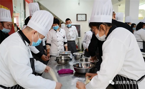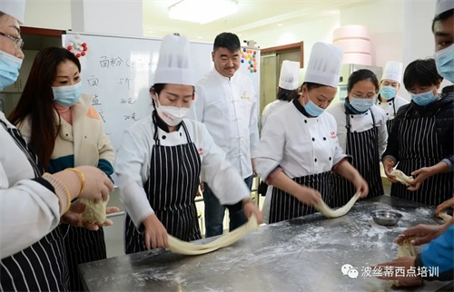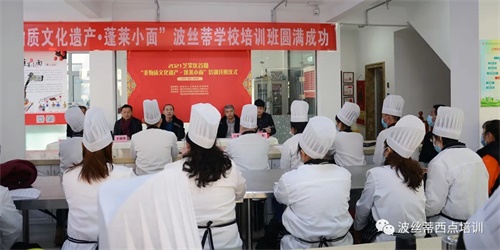 12月8日上午,在溫暖和煦的初冬時節,2021芝罘區首屆“非物質文化遺產·蓬萊小面”培訓班在煙臺波絲蒂西點培訓學校順利開班。本次培訓是在煙臺市人力資源社會保障局的指導下,由煙臺市芝罘區公共就業人才服務中心主辦,煙臺市非物質文化遺產保護中心、煙臺市社會組織聯合會教育科技分會、煙臺市波絲蒂中西糕點職業技能培訓學校聯合承辦,旨在更好地傳承發揚蓬萊小面非遺文化,進一步推進國家非物質文化遺產保護工作,培養和帶動非遺專業人才更好地提升技能、就業創業。