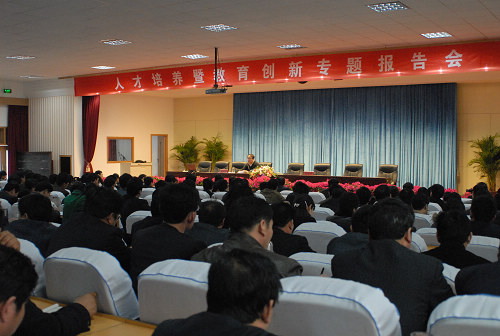 上午,田書記作了題為《提高學校管理干部素質》的報告。他指出,作為一個教育干部,要關注形勢,迎接挑戰,增強政治意識,樹立以人為本的教育理念,健全完善人格,保持健康心態,善于團結協作,掌握管理藝術,創造團結共事的領導環境,不斷提升自身素質,切實承擔起推動教育事業又好又快發展的光榮使命。下午,田書記作了題為《創新教育與創新人才培養》的報告。他指出,要充分認識21世紀是創新的世紀,轉變傳統教育觀念,發展學生的創造個性,培養學生創新精神,認真研究創新教育,努力培養更多創新型人才,為建設創新型國家做出更大貢獻。田書記的報告內涵豐富、見解深刻、妙趣橫生,使大家深受啟發。
