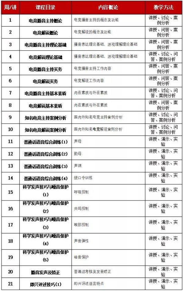 1.對電子競技主持與解說具有基礎的認知,熟悉電子競技主持與解說的工作內容與實踐要領。
