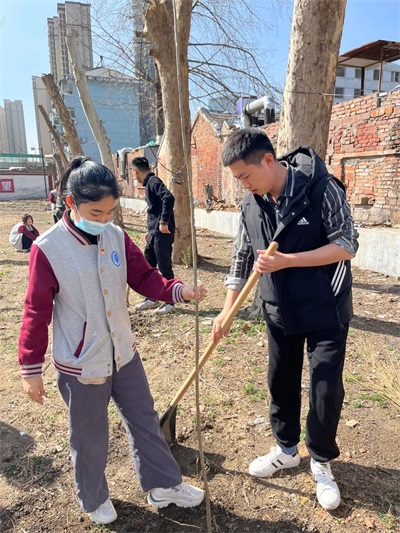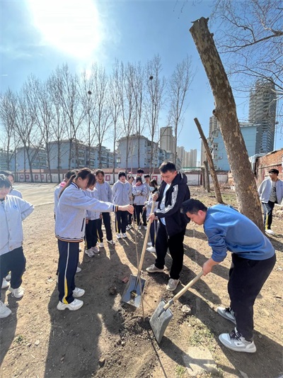陽春三月,春季盎然,為踐行植樹綠化精神,進一步美化、綠化校園,團委組織團員代表及新生、同濟南應(yīng)用技術(shù)畢業(yè)職業(yè)中等專業(yè)學(xué)校部分教職工在操場北空地參加義務(wù)植樹活動。