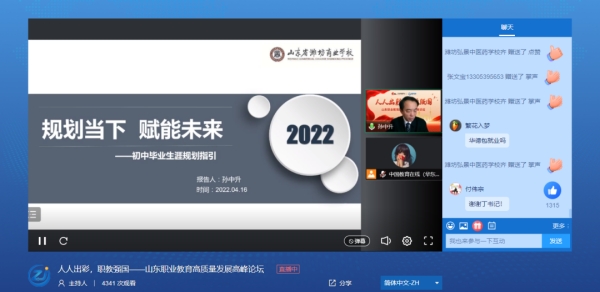 4月16日,山東省濰坊商業學校參加了以“人人出彩,職教強國”為主題的山東職業教育高質量發展高峰論壇(線上)暨職業院校網絡直播巡展活動。本次活動通過中國教育在線·職教網網絡直播平臺面向全省學生家長進行直播。