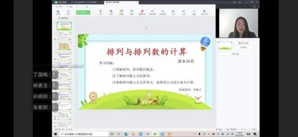 李雅潔老師提前將《排列與排列數》的學案、電子課本等資源分享給學生預習;利用希沃平臺課件輔助教學,自創問題情境導入新授知識點,配以視頻輔助教學;利用互動面板,讓學生以回復數字或簡單語言的方式回答問題,進行師生互動;典型例題使用在線手寫板演示,使解答步驟更清晰。