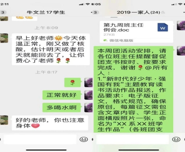 為了實(shí)現(xiàn)疫情防控期間“停課不停學(xué)”的目標(biāo),旅游系教師李立華不斷地探索著設(shè)備,反復(fù)進(jìn)行平臺模塊和菜單的應(yīng)用調(diào)試,一遍遍地模擬試講,直至能夠熟練運(yùn)用釘釘直播、線上課堂、視頻會(huì)議等線上授課方式,力求將失誤率降到最低,精益求精。李立華老師所教授的科目是身體護(hù)理課,在校期間是學(xué)生們搭檔協(xié)作練習(xí)。在線上教學(xué)期間,為了達(dá)到良好的教學(xué)效果,李立華老師鼓勵(lì)學(xué)生們?yōu)樽约旱哪赣H做身體護(hù)理,技能練習(xí)專業(yè)技能,同時(shí)又可以促進(jìn)學(xué)生與家長的關(guān)系,讓學(xué)生為父母緩解工作的疲勞,從專業(yè)的方面表達(dá)學(xué)生對父母的感恩。同時(shí)李立華老師作為班主任,她不僅要做好學(xué)生的心理疏導(dǎo)工作,隨時(shí)與家長溝通學(xué)生的學(xué)習(xí)情況,為學(xué)生加油打氣,還要及時(shí)統(tǒng)計(jì)上報(bào)學(xué)生各項(xiàng)信息,確保學(xué)生的信息上交及時(shí)且準(zhǔn)確。