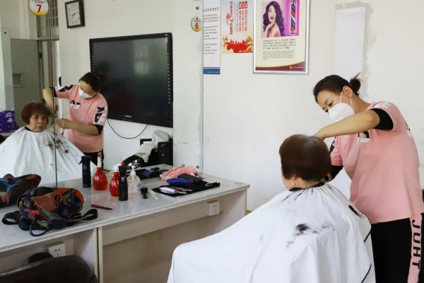 在上好課以及管理好班級的同時(shí),李立華老師也發(fā)揮著自己的專業(yè)特長,在做好防護(hù)的基礎(chǔ)上按照有關(guān)疫情防控的要求,與同專業(yè)兩位教師一起去到學(xué)校為因疫情封閉在校內(nèi)的80余名師生剪頭發(fā)。在剪發(fā)開始前李立華老師將剪刀、梳子等理發(fā)工具進(jìn)行消毒,為每一位需要理發(fā)的師生認(rèn)真的修剪,每剪一個(gè),還不忘用酒精對理發(fā)工具進(jìn)行消毒,讓師生們感到安心。細(xì)致周到的服務(wù),讓留校的師生們倍感溫暖。