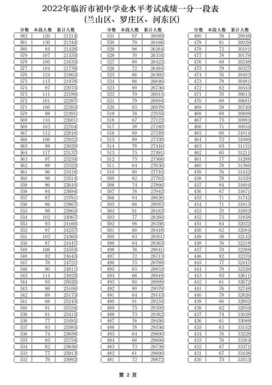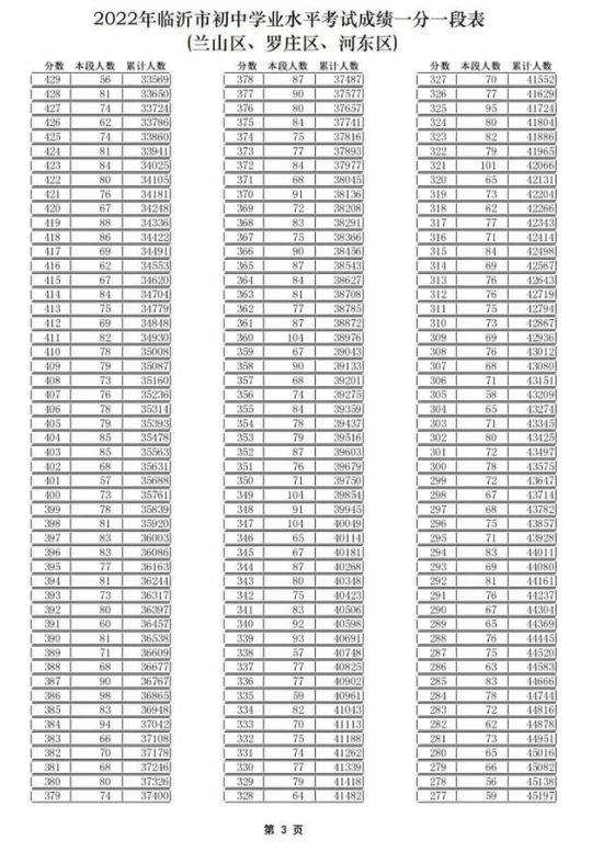 二、2022年臨沂市(蘭山區、羅莊區、河東區)中考成績一分一段表