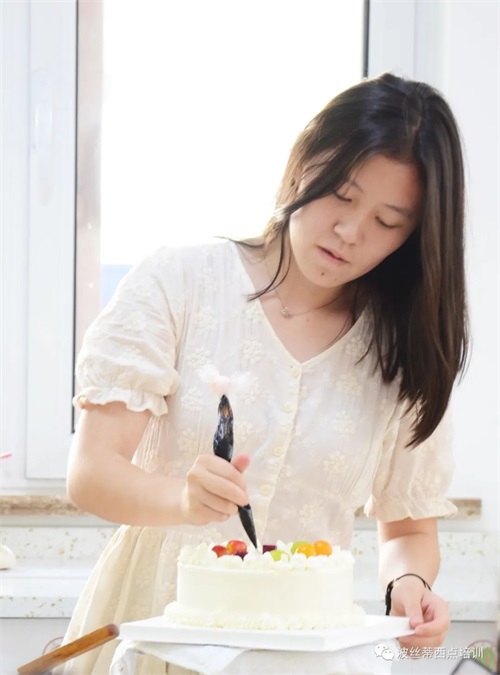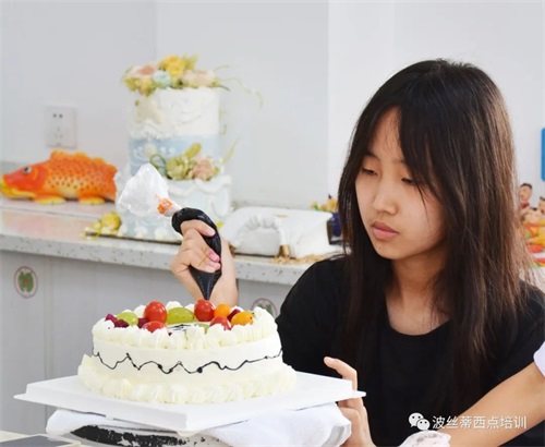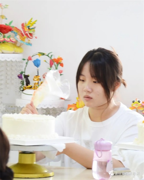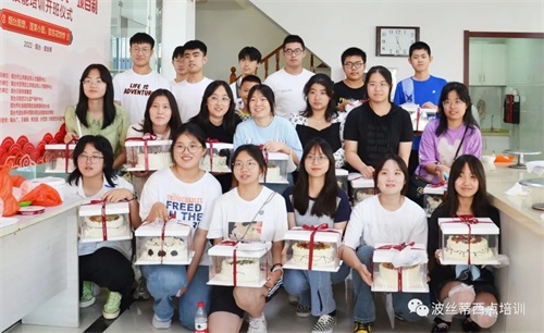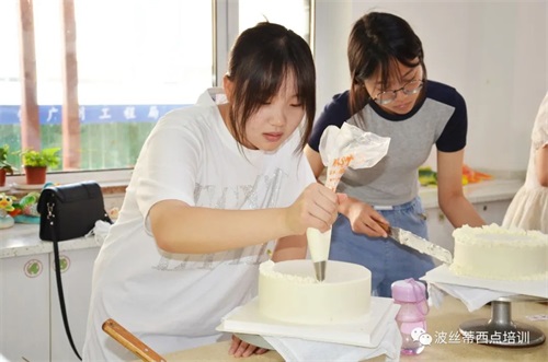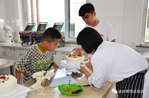 暑假美好快樂的一天,親自動手做一款美味有創意的蛋糕,送給所愛的家人,體驗傳統孝道文化,表現自己的美學潛能,鍛煉手腦協調能力,享受制作美食的樂趣。7月24日,一群可愛的同學們來到煙臺波絲蒂中西糕點職業技能培訓學校,體驗蛋糕制作,同學們在波絲蒂老師的帶領下,認真地完成自己的蛋糕作品。