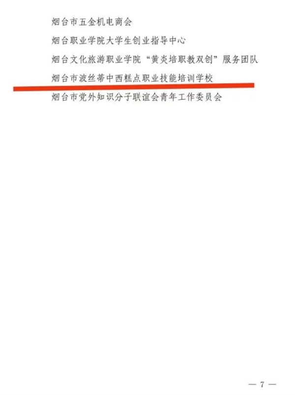 為表揚先進,樹立典型,推動工作,煙臺市委統戰部經研究決定,授予20個單位為“金牌服務團隊”稱號,煙臺市波絲蒂中西糕點職業技能培訓學校榜上有名,受到表彰。