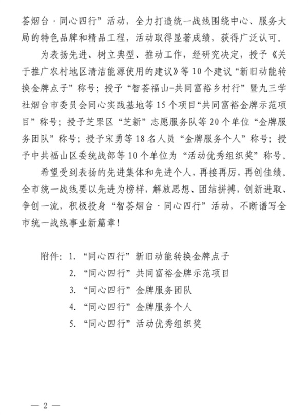 2022年以來,中共煙臺市委統一戰線工作部通過深入實施動能轉換區市行、共同富裕鄉村行、創新創造企業行、就業創業院校行“智薈煙臺·四心同行”活動,全力打造統一戰線圍繞中心、服務大局的特色品牌和精品工程,活動取得顯著成績,獲得廣泛認可。
