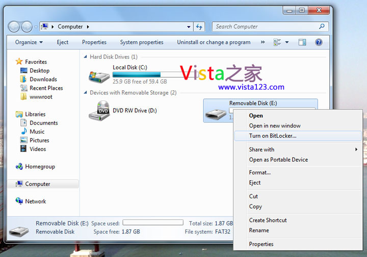 加密USB設備從來沒這么簡單過, 現在用戶可以右鍵點擊可移動設備然后選擇啟動BITLOCKER。