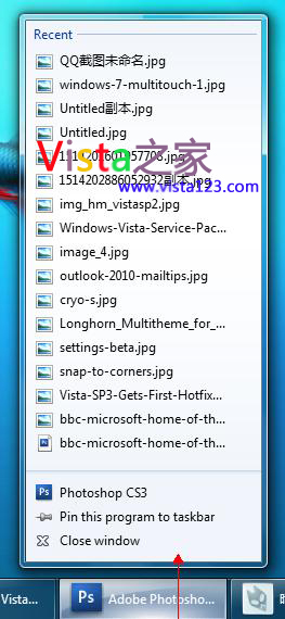 以滑動方式打開Windows 7的Jumplists