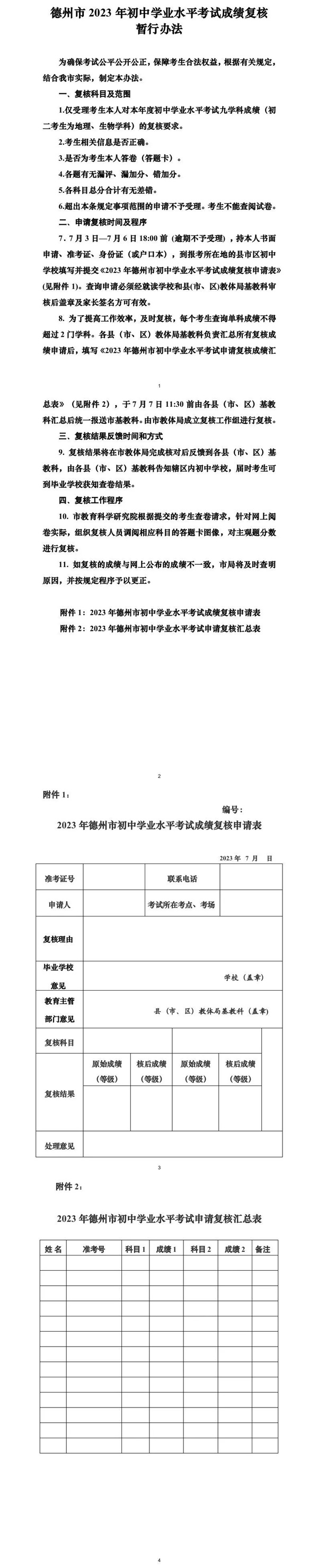 附件2:德州市2023年初中學業水平考試成績復核暫行辦法