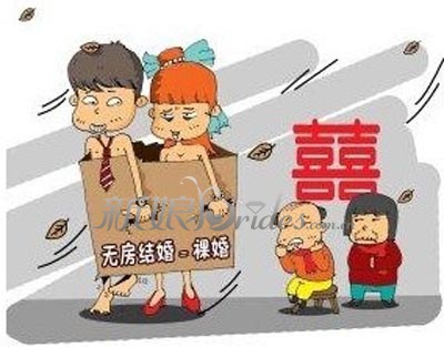 裸婚,是現(xiàn)在80后走進婚姻中新潮的一種結(jié)婚方式,他們用“沒房、沒車、沒鉆戒、沒婚紗、沒存款、沒婚禮和沒蜜月”,用諸多的“無”來詮釋節(jié)儉的結(jié)婚方式,總之,結(jié)婚時除了去登記處辦理紅艷艷的結(jié)婚證之外,其他的什么都可以不需要。它一方面體現(xiàn)了現(xiàn)代社會對婚姻理解的轉(zhuǎn)變,另一方面也體現(xiàn)了現(xiàn)代社會物質(zhì)觀念的轉(zhuǎn)變。