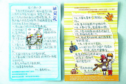 天天和爸爸媽媽在一起,為什么不直接提出建議,卻要集體寫一封信呢?三年級(jí)一班的班長(zhǎng)張曉雯認(rèn)為,知道爸爸媽媽是愛自己的,當(dāng)面提意見,怕傷父母的心。