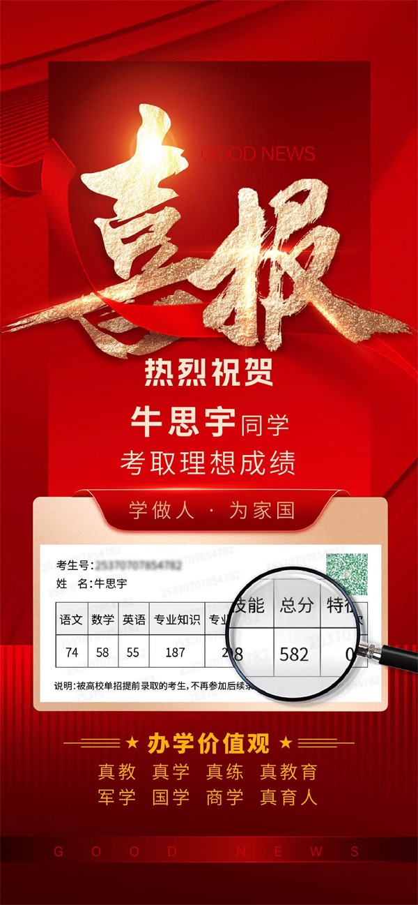 在軍智教“軍事化管理+職教高考”的淬煉下,用三年時光完成了從“技能新手”到“本科準大學生”的華麗轉身。學校2012年首創春季高考班以來,始終以“普通高中管理強度+職業教育實戰特色”雙軌并行,將文化課提分與專業技能打磨融入每日作息,讓98%的升學率成為學生改變命運的堅實底氣。