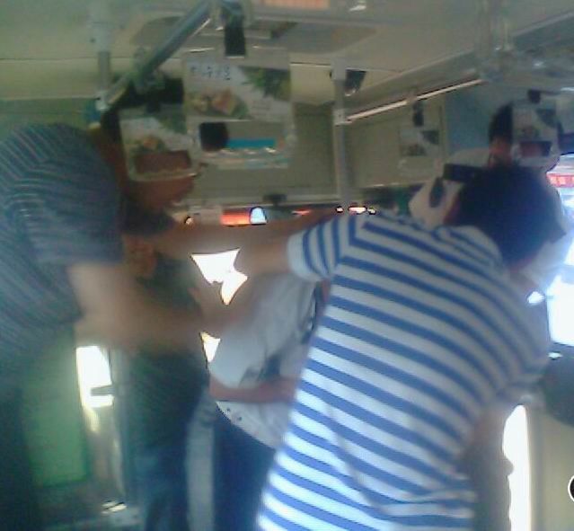 K53司毆打乘客,眾乘客拉架(網友“我有良民證”手機拍攝)