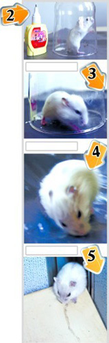 約30秒后,修正液液體開始變硬,邊緣部分基本干了,小白鼠焦急地尋找出口,將干了的液體扒得到處都是。