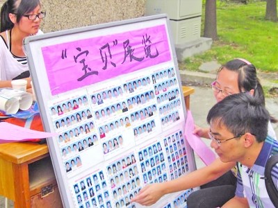 “甩賣啦,甩賣啦,甩賣哥哥姐姐啦,學弟學妹們,買個哥哥姐姐上大學,保你大學樂悠悠!”昨天,記者剛一走進揚州大學生物科學與技術學院迎新現場,就聽見幾個大學生在向新生“叫賣”著,而他們的身旁,則擺放著可供新生“選購”的數百個學長學姐的照片和資料。書能賣,筆可售,怎么哥哥姐姐也能賣?帶著這些疑問,記者采訪了該院“販賣”學長學姐的“小老板”——大三學生馬紅昕。