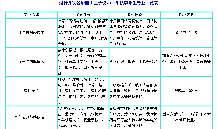 您的位置: 山東技校網 >> 煙臺船舶工業學校 >> 煙臺船舶工業學校2012年秋季招生