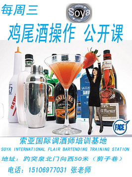 山東技校網 >> 索亞調酒師培訓基地 >> 每周六下午2:00 雞尾酒操作公開課