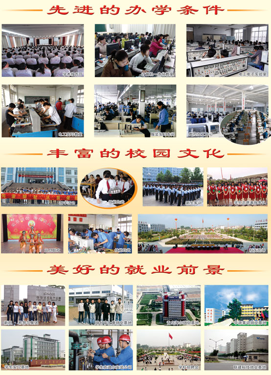 學校基礎設施完善,擁有教學樓、辦公樓、禮堂、實習車間、學生公寓、校園電子寬帶網絡等先進教學設備。擁有一支愛崗敬業、專業及配備齊全的師資隊伍,并根據需要聘請專家、學者及專業技術人員到校任教。學校領導班子團結向上,經驗豐富,精于管理,富于開拓。