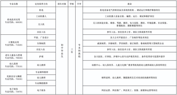 5、學(xué)生畢業(yè)時(shí),頒發(fā)國(guó)家承認(rèn)學(xué)歷的中專畢業(yè)證書,升入大專及本科院校的獲得大;虮究飘厴I(yè)證書及中高級(jí)職業(yè)資格證書。獲得大專以上學(xué)歷的學(xué)生可參加公務(wù)員、事業(yè)編招考。大學(xué)期間參軍入伍者部隊(duì)優(yōu)先錄取,并由政府部門退還大學(xué)期間所有學(xué)費(fèi),大專生退伍的可免試上本科。
