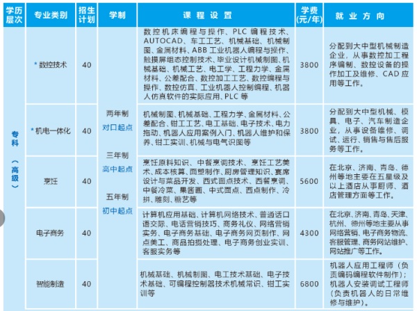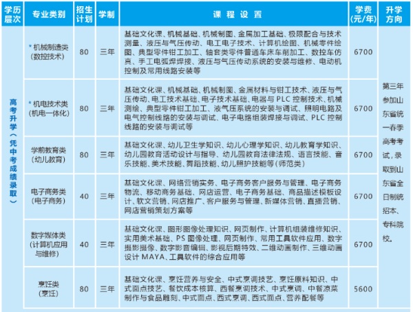 專科(高級):數控、機電:1600元/年;烹飪:2100元/年;電子商務:1100元/年。