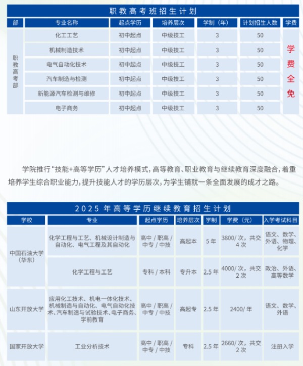 您的位置:山東技校網 >> 棗莊技校網 >> 山東化工技師學院2025年招生簡章