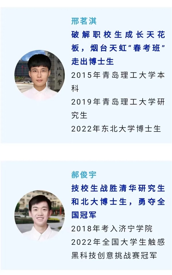 山東省層面:2020年1月教育部和山東省人民政府聯(lián)合發(fā)布《關(guān)于整省推進(jìn)提質(zhì)培優(yōu)建設(shè)職業(yè)教育創(chuàng)新發(fā)展高地的意見》,意見指出:本科招生計(jì)劃安排逐步達(dá)到應(yīng)用型本科高校本科招生計(jì)劃的30%。國(guó)家層面:2021年10月中共中央辦公廳、國(guó)務(wù)院辦公廳印發(fā)了《關(guān)于推動(dòng)現(xiàn)代職業(yè)教育高質(zhì)量發(fā)展的意見》中強(qiáng)調(diào):到2025年,職業(yè)本科教育招生規(guī)模不低于高等職業(yè)教育招生規(guī)模的10%。2022年5月1日新修訂的《中華人民共和國(guó)職業(yè)教育法》正式施行,明確提出職教與普教同等重要地位,將職業(yè)教育的地位提高到一個(gè)新的高度!總之,在國(guó)家大力發(fā)展職業(yè)教育的背景下,春季高考沒有高中生競(jìng)爭(zhēng)、到2025年本科計(jì)劃將比2021年增長(zhǎng)13.51倍,選擇春季高考,盡享政策紅利!