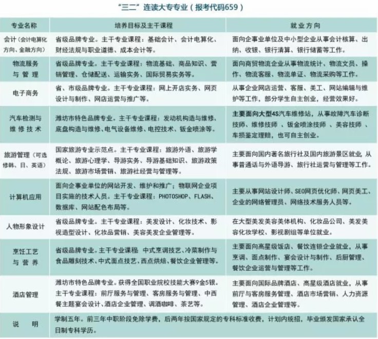 山東省濰坊商業(yè)學(xué)校有哪些三二連讀大專專業(yè)?