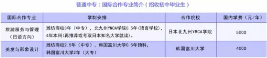 3、“3+4”中職本科專業(yè)報(bào)考條件: 招收參加當(dāng)年濰坊市中考。在濰坊市教育信息平臺(tái)統(tǒng)一填報(bào)志愿。成績達(dá)到錄取標(biāo)準(zhǔn)的學(xué)生。