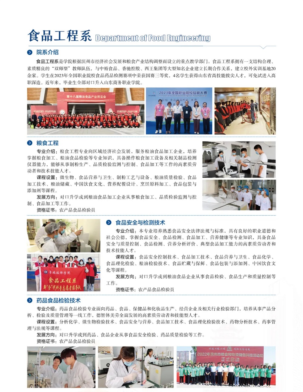 冠名企業:濱州中裕食品有限公司、香馳控股有限公司、西王集團有限公司 主要合作企業:山東渤海油脂工業有限公司、安琪酵母股份有限公司、山東達信食品科技股份有限公司等食品藥品類企業 合作高校:山東商務職業學院 |