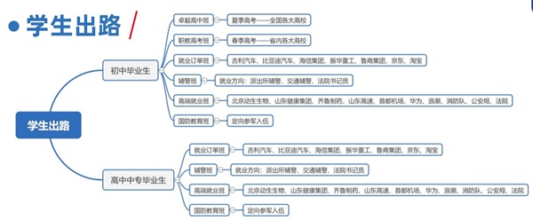 5種學(xué)生培養(yǎng)模式:卓毅高中班、職教高考班、高端就業(yè)班、就業(yè)訂單班、短期培訓(xùn)班