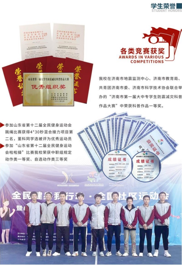 濟南應用技術職業(yè)中等專業(yè)學校辦學歷史悠久,辦學十余年來,多次被濟南市人民政府、濟南市教育局評為“辦學先進單位”、先后榮獲濟南市“文明單位”“職業(yè)教育單位”等多項榮譽稱號,并多次在濟南市校園技能大賽中獲獎。