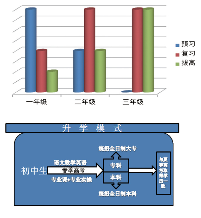 學校具備多年升學經驗良心打造教師團隊,配備大量“雙師型”教師為學生的升學提供優質保障,全部專業年升學率“專科基本達到97%-99%”本科基本達到“33%-46%”學校采取“年級分化制”并貼合山東省春季高考考綱制定年級專項教學計劃為學生升學之路保駕護航。