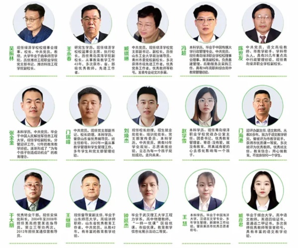 復讀學校特聘高級專家顧問團隊有:全國第一批重點高中校長數學特級教師周連民,山東省中高考命題研究指導專家張國鐘教授。學校師資力量雄厚,從山東省各地市聘有多年送高考畢業班經驗的專任教師40名。其中,正高級教師6人,特級教師2人,高級教師20人,中級專業教師16人,獲得省市級以上獎勵者25人,雙師型教師12人。是一支師德高尚、業務精湛、經驗豐富的高素質專業化教師隊伍,是一個特別愛學生、特別能吃苦、能打硬仗的優秀團隊。