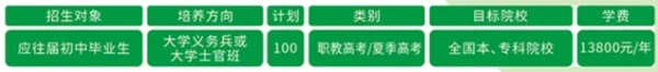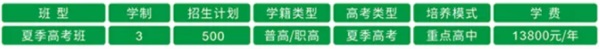 夏季高考班招收山東省應往屆初中畢業生,根據成績或綜合面試擇優錄取,根據學生情況注冊普高或職高學籍,聘請省內知名名師,按照重點高中教學管理模式,在校學習三年后參加夏季高考,在專科的基礎上以沖刺本科為培養目標,培養高素質、高文化人才。