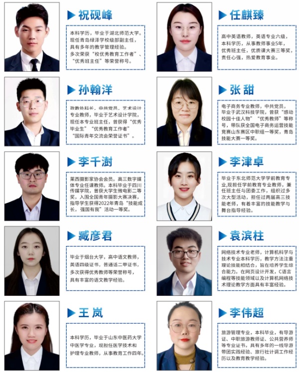 學校以升學為特色,夏季高考、職教高考并駕齊驅,建立了一支具有較強影響力的師資隊伍。學校充分發揮名師引領作用,同時又引進優秀文化課、專業課教師,目前在校教師120人,本科以上學歷教師120人,占比100%,研究生以上學歷教師48人,占比40%;副高級以上職稱教師36人,占比30%,教學成績顯著。
