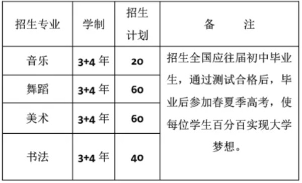藝術(shù)類課程:(音樂、舞蹈、美術(shù)、書法)學(xué)制三年。第一學(xué)年至第二學(xué)年上學(xué)期主要學(xué)習(xí)同等高中文化課程為主,第二學(xué)年下學(xué)期至第三學(xué)年,根據(jù)學(xué)生所學(xué)實際在音樂、舞蹈、美術(shù)、書法四大專業(yè)特長中任選其一,作為高考方向進(jìn)行專業(yè)教育學(xué)習(xí),參加春夏季高考,進(jìn)入大學(xué)教育。